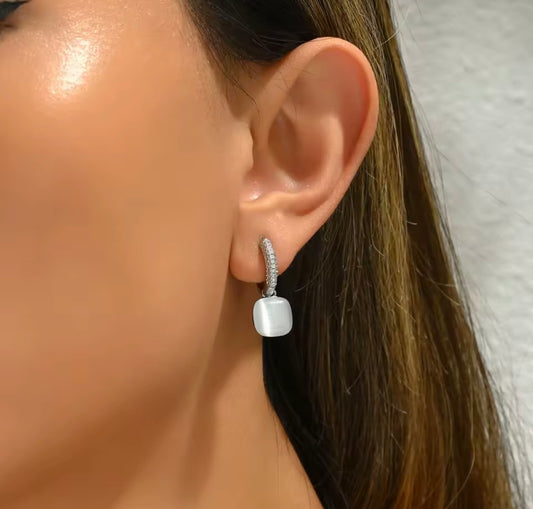 Pendientes Colgantes Ojo de Gato con Circonita | Joyería Elegante Mujer